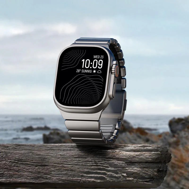 The AERO Titanium Band redefines strength and elegance for your Apple Watch. Crafted from aerospace-grade Grade 5 titanium fused with soft fluororubber, this band delivers unmatched durability with a smooth, comfortable fit.
